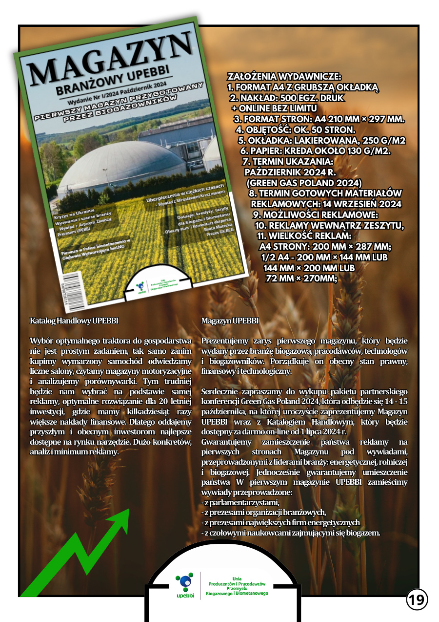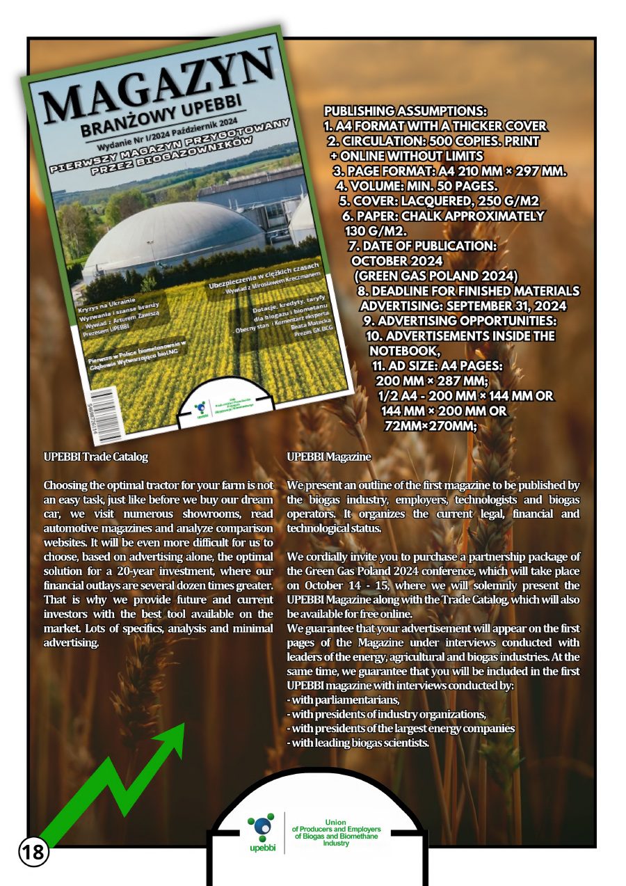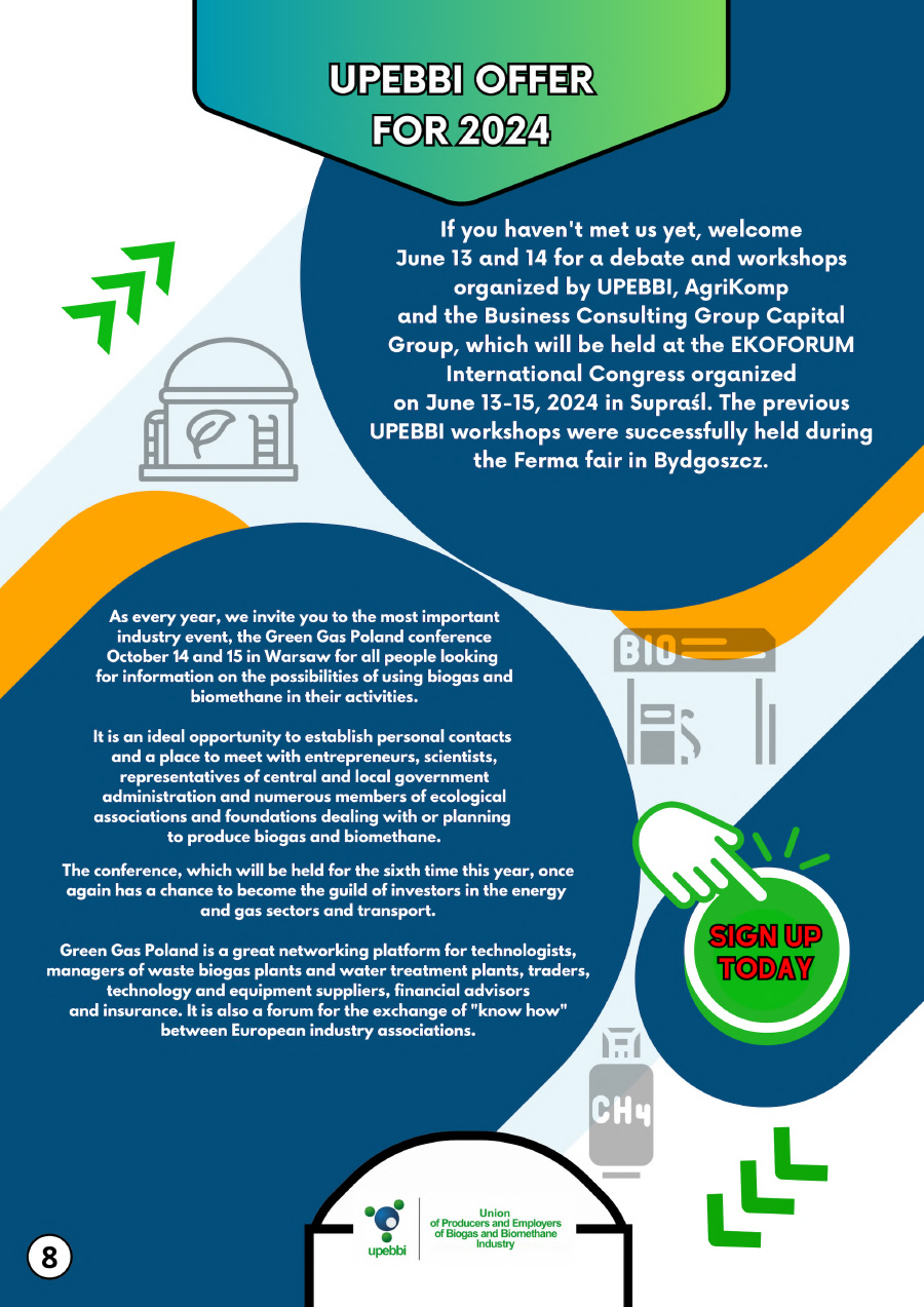 UPEBBI Advertising Catalog 2024 💥 💥 💥 Check out the offer of the largest industry organization 👉 this year we have events and publishing products for you. 📆 As every year, we invite you to Warsaw for a national conference on biogas and biomethane 📆 on October 14 and 15, during which leading 📊 companies and institutions 👨🏻🔬 👷🏻 👨🏻🔧 will have the opportunity to present their products and technologies.