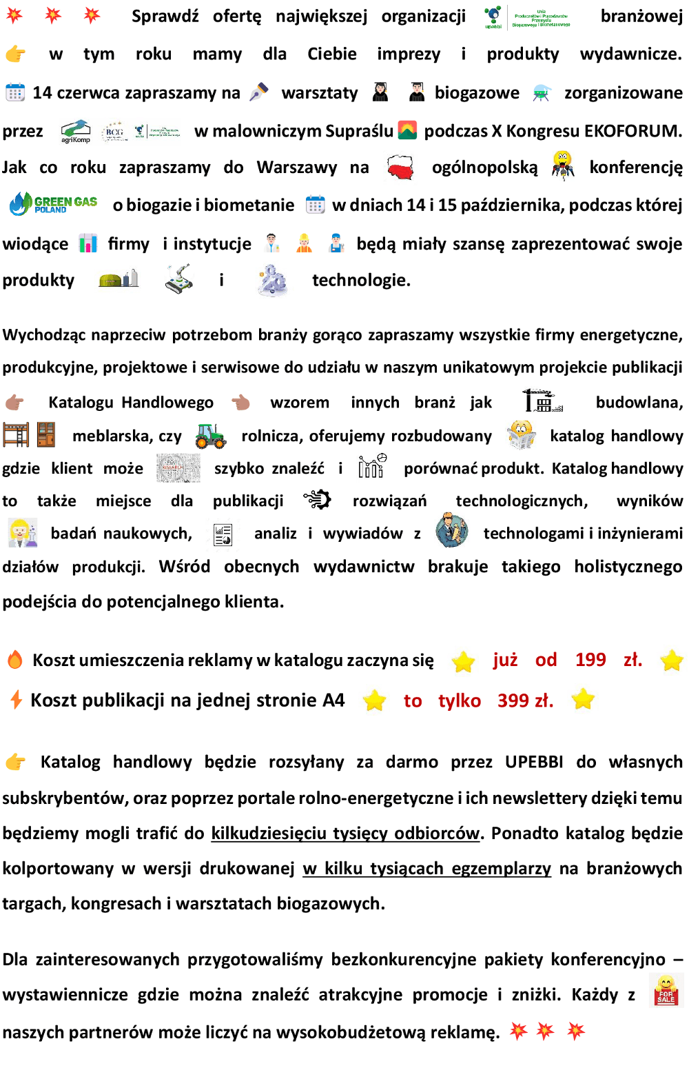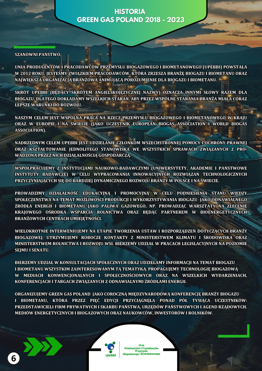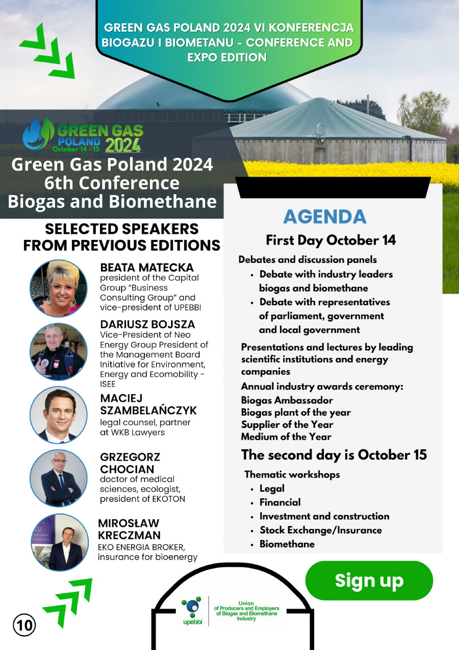 UPEBBI Advertising Catalog 2024 💥 💥 💥 Check out the offer of the largest industry organization 👉 this year we have events and publishing products for you. 📆 As every year, we invite you to Warsaw for a national conference on biogas and biomethane 📆 on October 14 and 15, during which leading 📊 companies and institutions 👨🏻🔬 👷🏻 👨🏻🔧 will have the opportunity to present their products and technologies.