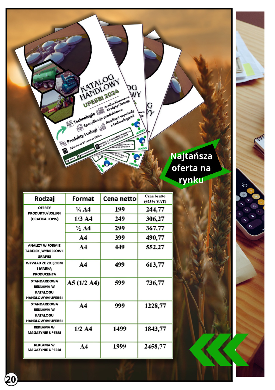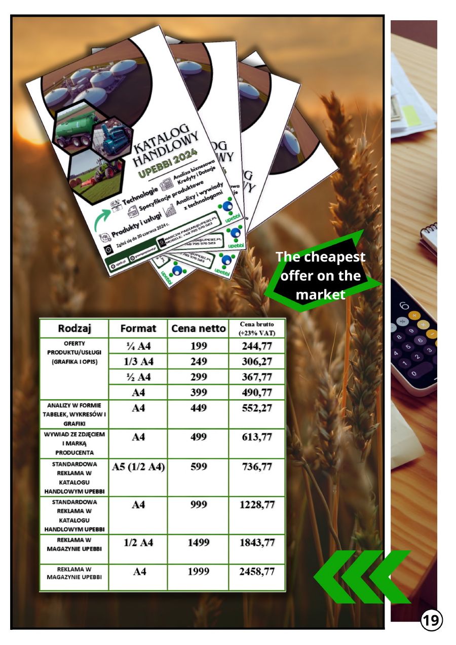 👉 The commercial catalog will be sent free of charge by UPEBBI to its own subscribers, and through agri-energy portals and their newsletters, thanks to which we will be able to reach several dozen thousand recipients. In addition, the catalog will be distributed in a printed version in several thousand copies at industry fairs, congresses and biogas workshops.