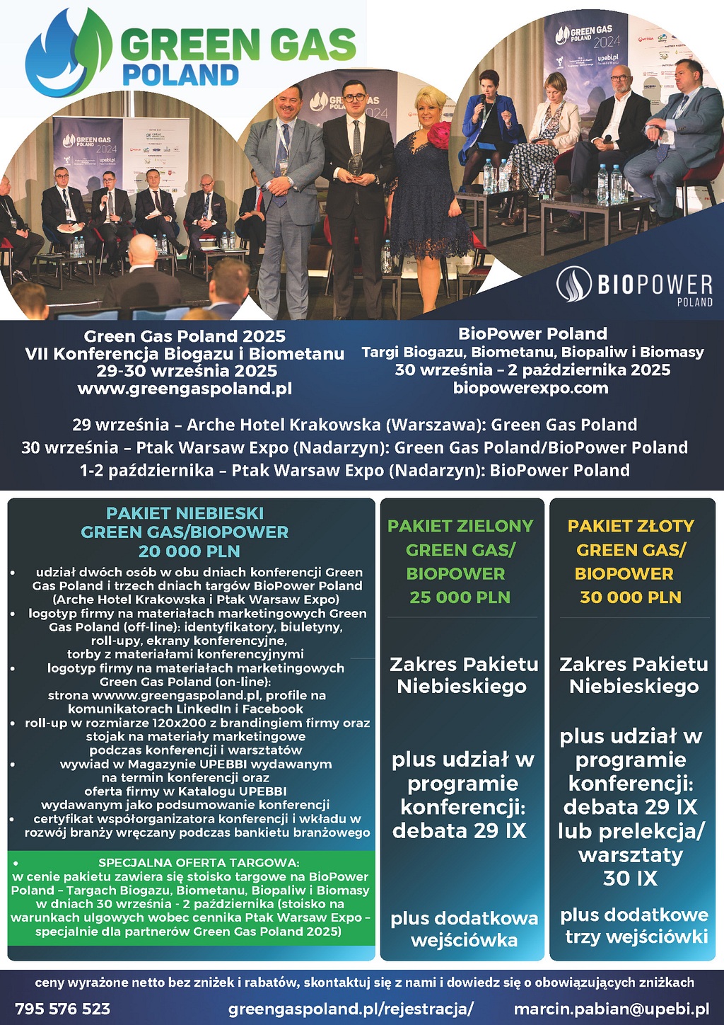 Sprawdź ofertę największej organizacji branżowej UPEBBI. Jak co roku zapraszamy do Warszawy na ogólnopolską konferencję o biogazie i biometanie Green Gas Poland 29-30 września, podczas której odbędą się debaty, warsztaty, a wiodące firmy i instytucje będą miały szansę zaprezentować swoje produkty i technologie.