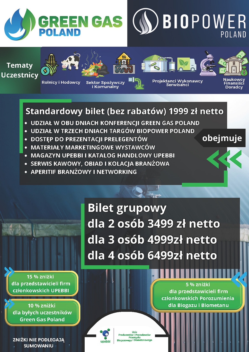 Sprawdź ofertę największej organizacji branżowej UPEBBI. Jak co roku zapraszamy do Warszawy na ogólnopolską konferencję o biogazie i biometanie Green Gas Poland 29-30 września, podczas której odbędą się debaty, warsztaty, a wiodące firmy i instytucje będą miały szansę zaprezentować swoje produkty i technologie.